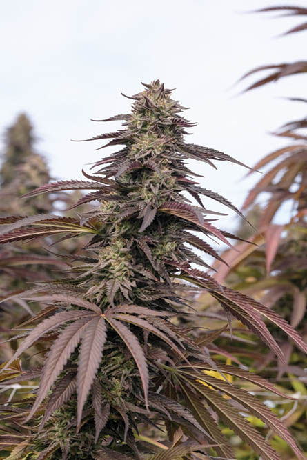 Another exciting selection is Purple Wreck, a cross of Purple Urkel and Trainwreck. Originally popped from a seed pack over 15 years ago, the genetic comes via Reserva Privada, a U.S.-based subsidiary of DNA Genetics. Consisting of a terpinolene-heavy profile, the flower reeks of pine and sage.