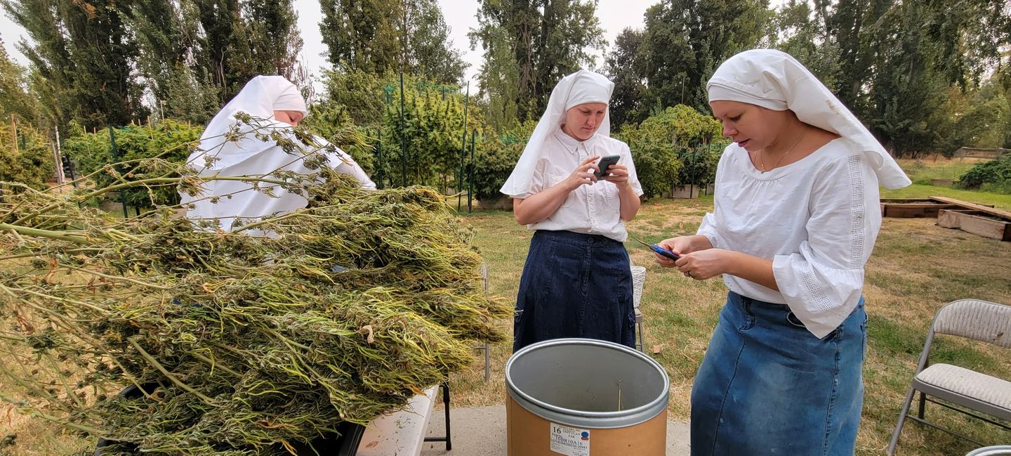 Every Sister’s journey is interesting … Sister Sophia was born in South Africa and immigrated to Michigan when she was young. Sister Quinn was born in Canada, but immigrated to the U.S. when she was young. Sister Maria is now in the process of immigrating here for three years. These women have stories. Trimming season is my favorite time of year because we don’t query each other about our pasts. That stuff has to come out naturally, and over the sacred weed, stories have a special solemnity.