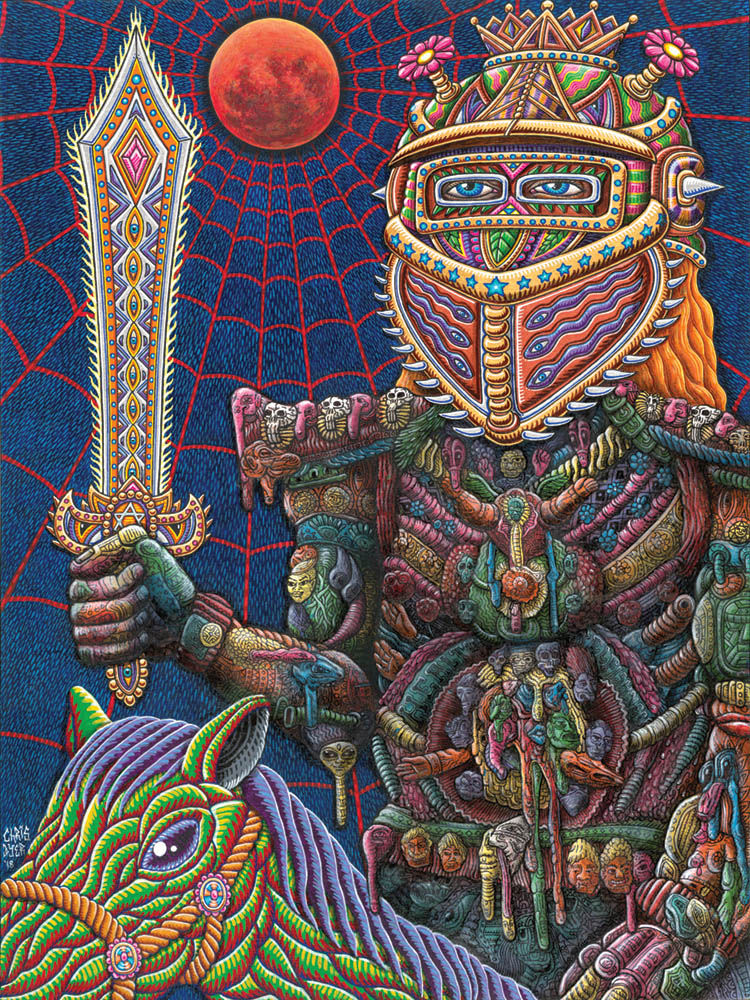 Through his art, Chris Dyer attempts to give a physical, visual form to concepts, beings and feelings conjured to his mind in part from his many experiences as a spiritual psychonaut.