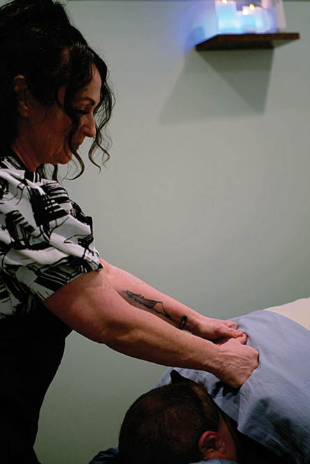 Steinke, a graduate (and former teacher) of East West College of the Healing Arts, came to massage through her 28 years of hospice volunteering. There, she witnessed something special: “I noticed how just the smallest touch, a hand on someone’s shoulder, would result in so much comfort. The client would take a deep breath. Sometimes, things like symptoms from dementia or Alzheimer’s would ease.”