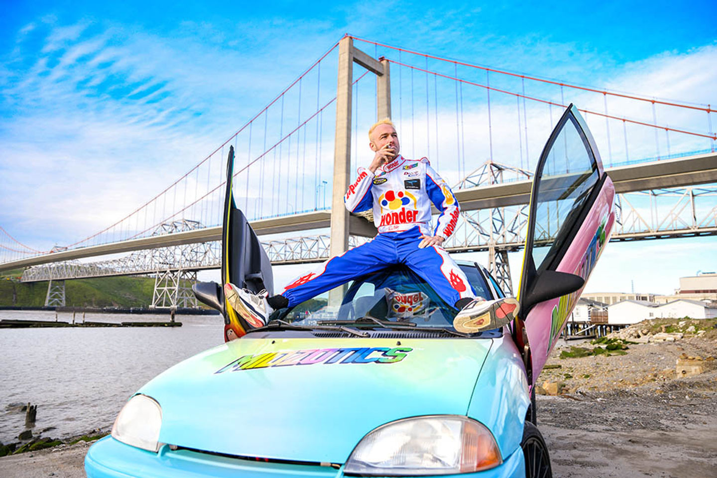 The shot-for-shot video remake shows the rehearsed rap flow and the pure pro approach Shotwell and his team take to his projects. No official word on what he has up his sleeve next, but he did hint that his next “midzpersonation” would be Jack Harlow. As we tear past the Infineon Raceway in Sonoma, he comments that he wants to race his collection of Geo Metros there for a video shoot someday.